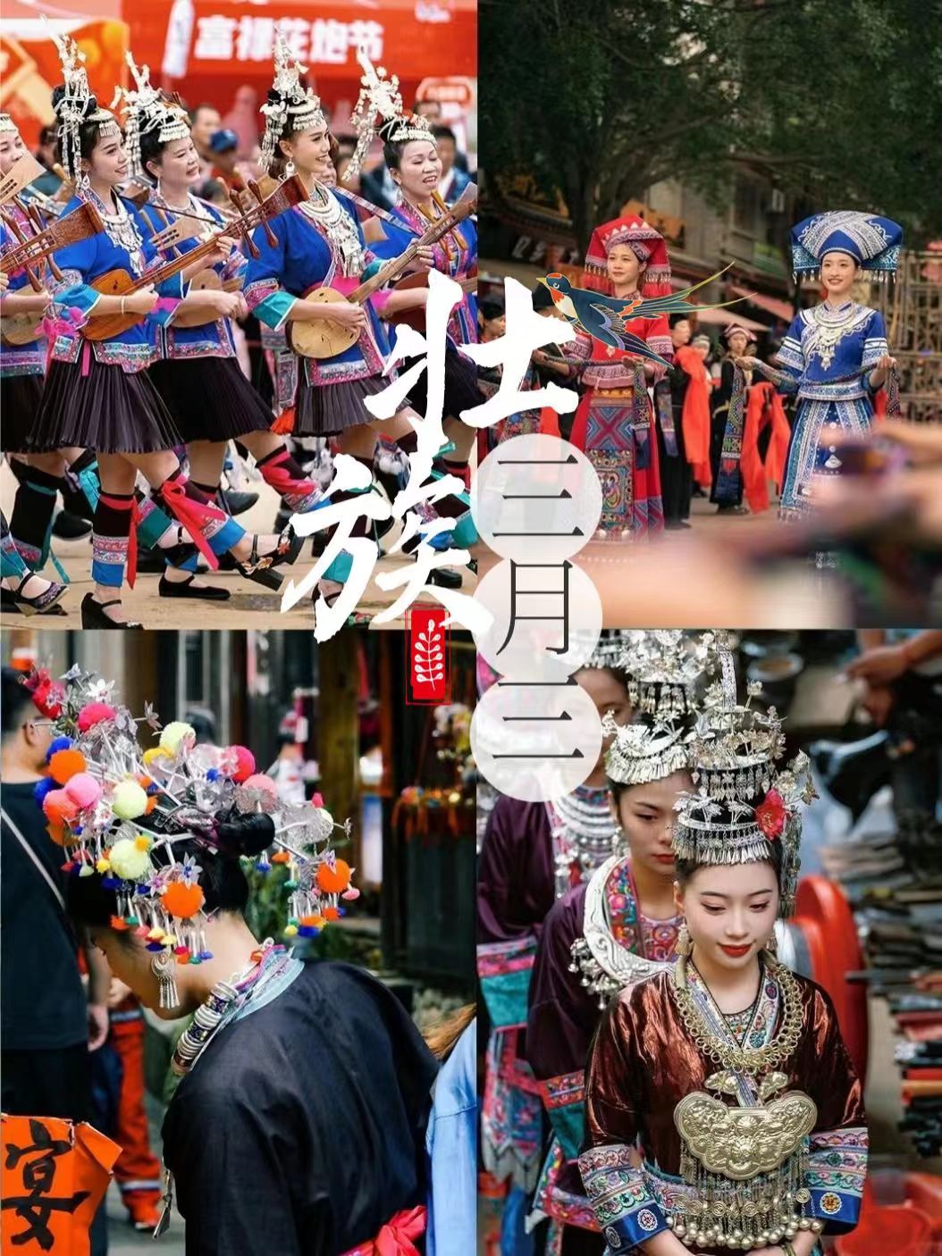 ร้องเพลงพื้นบ้าน จัดแสดงเครื่องแต่งกายแบบดั้งเดิม ตีกลอง เต้นรำ และงานเลี้ยงในงานเลี้ยงโต๊ะยาว กิจกรรมแบบดั้งเดิมจะจัดขึ้นตั้งแต่วันที่ 3 ของเดือนจันทรคติที่ 3 ถึงวันที่ 19 เมษายน ปี 2026 ในกวางสี