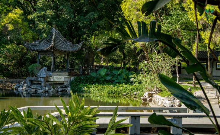 รวบรวมผลงานศิลปะสวนอันงดงามเกือบร้อยชิ้นทั่วโลก พร้อมทิวทัศน์อันงดงามทุกมุม คล้ายพิพิธภัณฑ์สวน ผสมผสานภูมิทัศน์ธรรมชาติเข้ากับสถาปัตยกรรมที่มนุษย์สร้างขึ้นอย่างเชี่ยวชาญ จัดแสดงความล้ำลึกของสวนตะวันออกและสไตล์ของประเทศต่างๆ